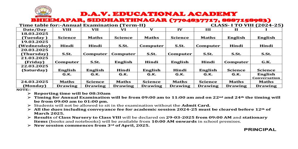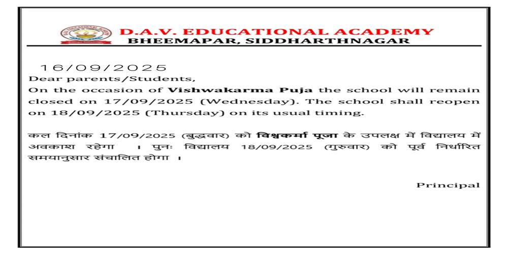 Wishing all the success to Team DAV Educational Academy, Bheemapar, Siddharthnagar.
