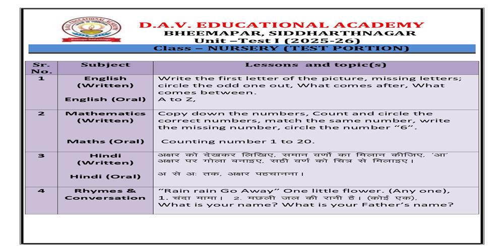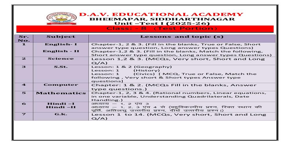 DAV Educational Academy, Bheemapar, Siddharthnagar